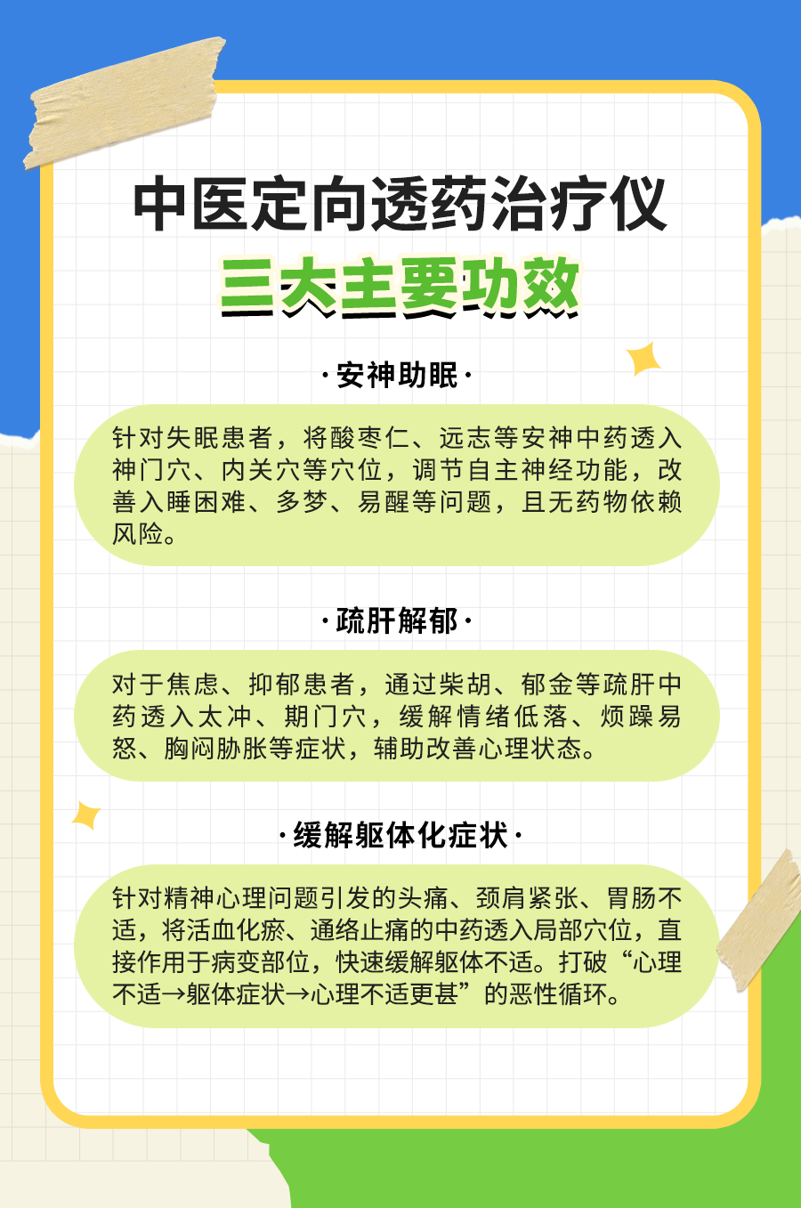 仪器通过低频脉冲电场的“促渗作用”,将中药提取的活性成分直接透过皮肤屏障,精准进入靶位组织,在局部形成药物聚集区,实现“药穴同调”——既发挥中药调理脏腑、平衡阴阳的作用,又通过穴位刺激疏通经络、缓解躯体不适。